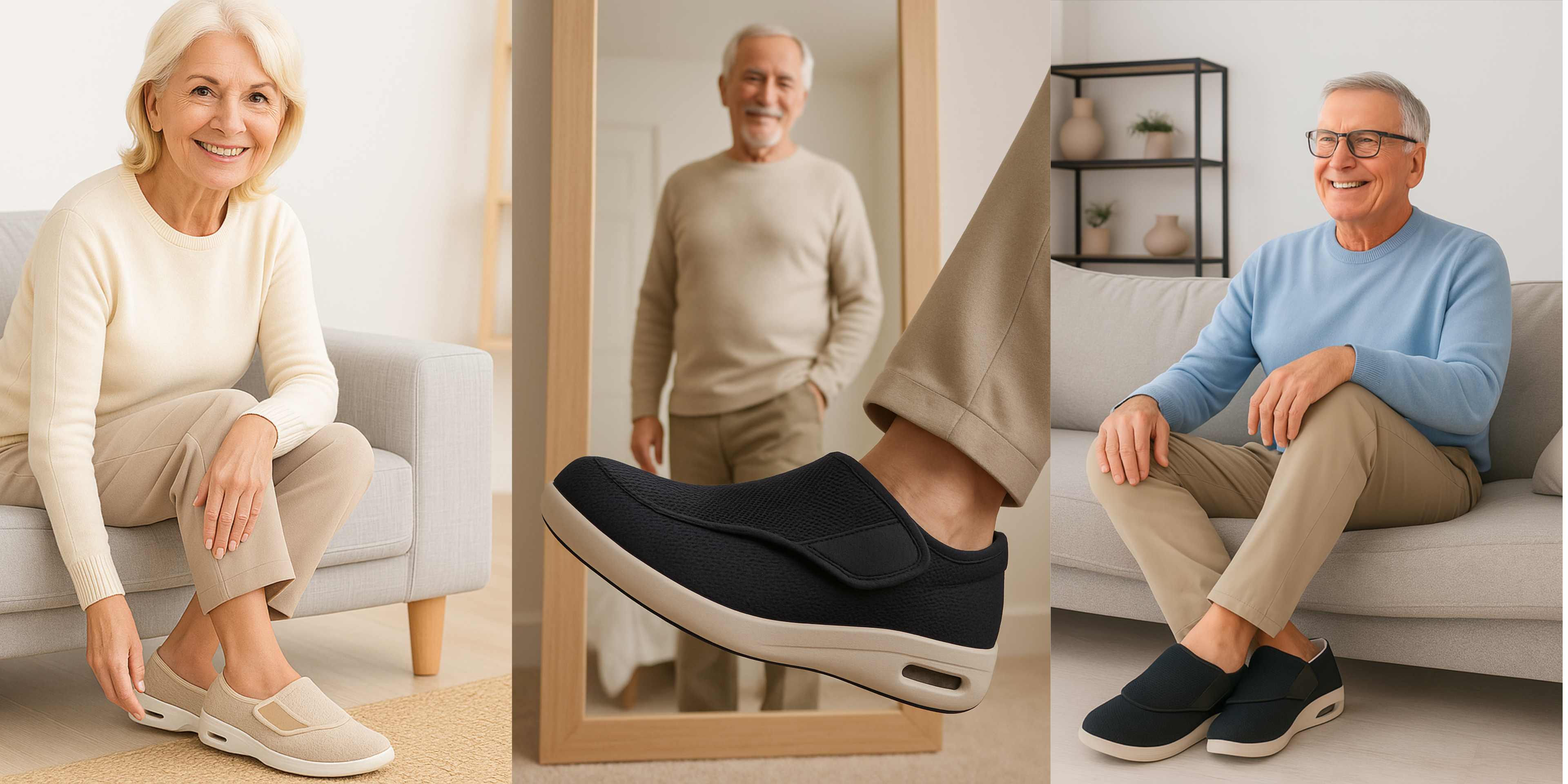 Erleben Sie ComfyFuß Schuhe – entwickelt für ganztägigen Komfort, um Druck zu lindern, Schmerzen zu reduzieren und Ihren Füßen die Freiheit zu schenken, die sie verdienen!